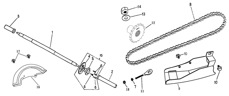 Rear Wheel Axle, Chain (Adly ATV 90II 4T (CVT))