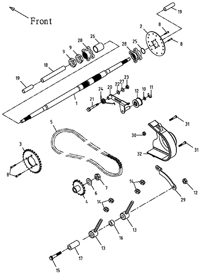 Rear Wheel Axle, Chain (Adly GK-125 (BK-125) 2005)